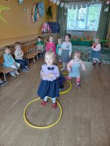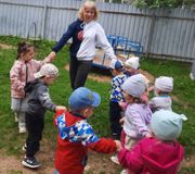 Для ребят средней группы прошла развлекательно – игровая программа «Я живу в России!». Вместе с педагогами дети водили хоровод «Россия», отгадывали загадки о нашей великой стране, пели гимн Российской Федерации. Дети смогли показать какие они смелые, ловкие и быстрые, участвуя в эстафетах: «Собери матрёшку» и «Собери Кремль из кубиков», "Богатыри". По доброй традиции дети рисовали мелками на асфальте.