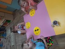 В старшей группе «Незабудки» в этот день царило хорошее настроение. Ребята с интересом узнали историю появления этого праздника, поучаствовали в конкурсе «Отгадай смайлик по описанию», поиграли в игру «Улыбка» и нарисовали друг другу весёлых друзей.